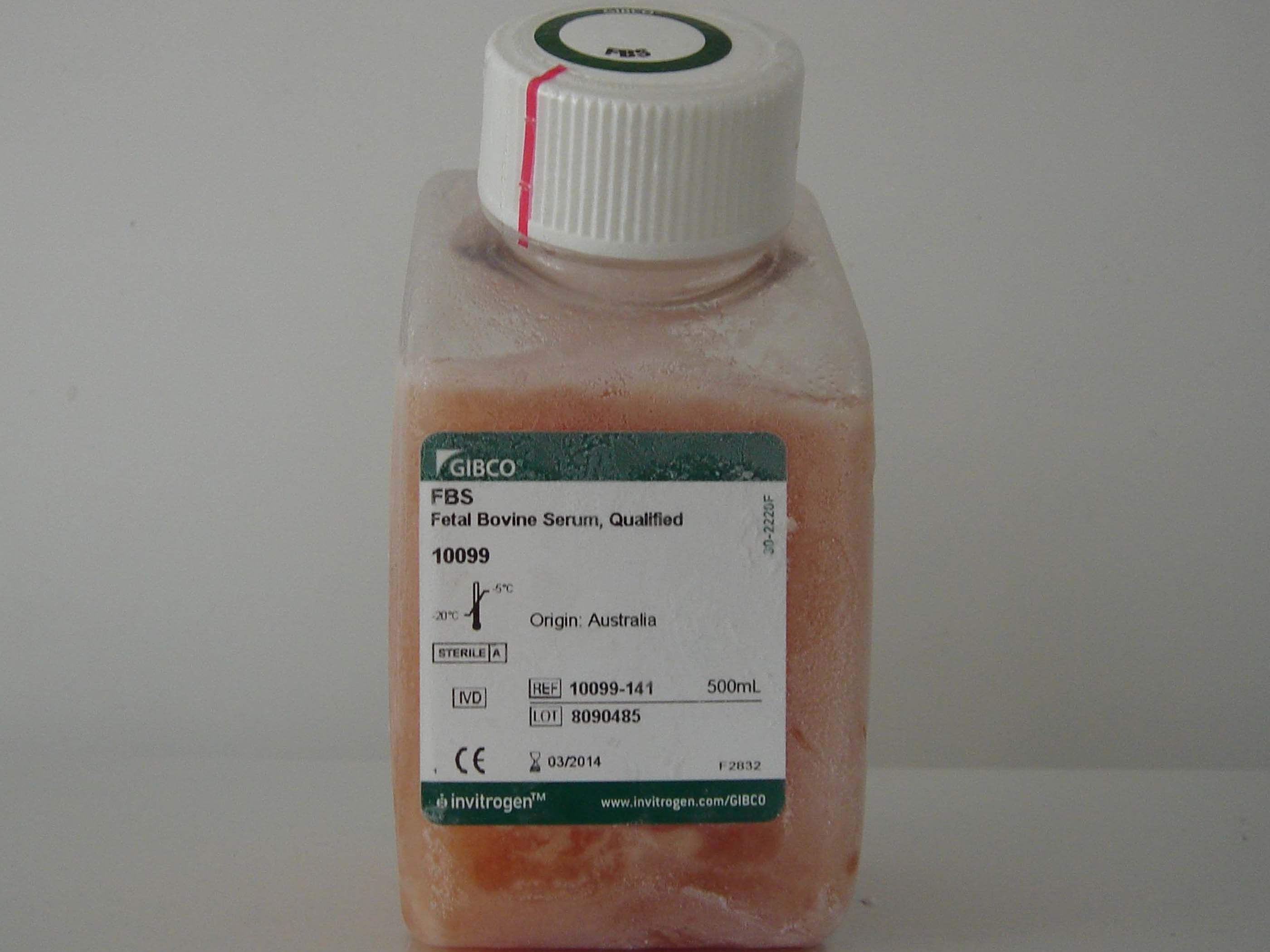 血清通常在细胞培养中作为基础生长培养基的添加剂。常用血清是胎牛血清(FBS),也称FCS。胎牛血清是从适合人类卫生习惯的农场收集的。有时,也可能用其他的牛血清,如新生牛血清或者供体牛血清。在细胞培养中,血清供应了丰富的高分子蛋白,低分子量营养物,疏水载体蛋白和其他体外细胞生长必要的成分如激素和粘附因子。同时,血清可以增加培养基的缓冲能力或中和有毒成分,起到保护细胞的作用。在细胞培养过程中是否选择添加血清,主要根据基础培养基化学成分,培养细胞的类型和培养体系而定。