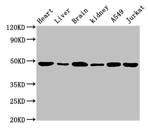 Positive WB detected in: Mouse heart tissue, Mouse liver tissue, Mouse brain tissue, Mouse kidney tissue, A549 whole cell lysate, Jurkat whole cell lysate